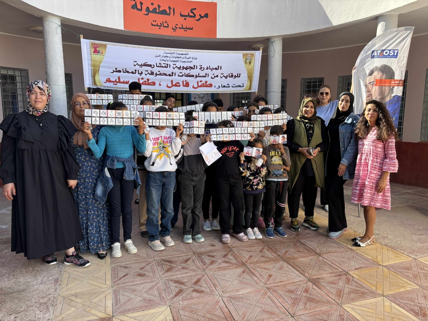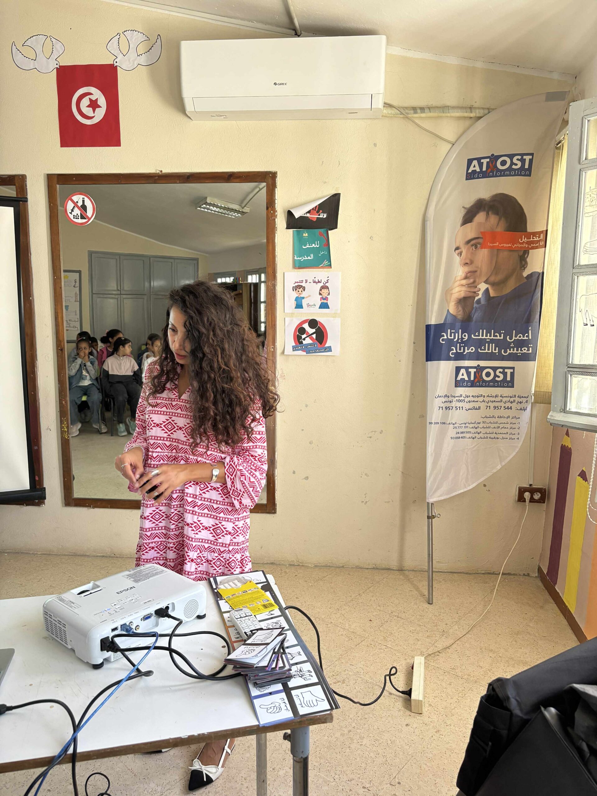 La psychologue du centre, FERCHICHI SOUMAYA, a animé une séance interactive de sensibilisation auprès des enfants de 10 à 18 ans. A travers des saynètes illustrées, des définitions accessibles et des échanges ouverts, les participants ont pu mieux comprendre les comportements à risque, leurs conséquences et les ressources disponibles en cas de besoin.